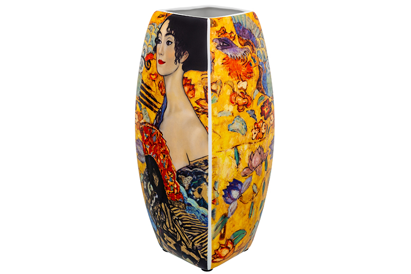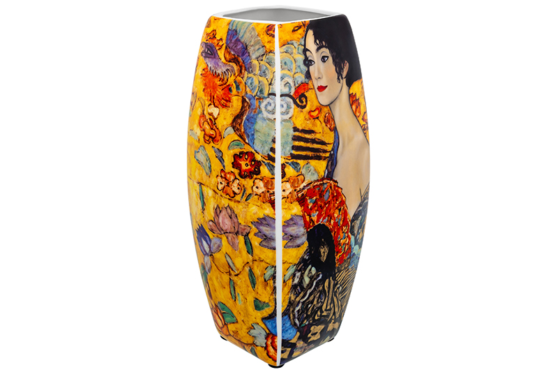 Настольная ваза Elan Gallery "Дама с веером" размером 12,5х12,5х28 см и объёмом 3 литра прямоугольной формы выполнена из фарфора нового поколения new bone china. Благодаря современным технологиям этот вид не уступает традиционному костяному фарфору в прочности, но гораздо экологичнее в производстве. Имеет маленькие антискользящие накладки с обратной стороны дна для устойчивости на гладкой поверхности. В коллекции бренда Elan Gallery можно найти много красивой посуды и предметов декора с изображениями по мотивам шедевров мировой живописи! Высокая вазочка украшена репродукцией картины известного художника Густава Климта. Яркий и узнаваемый сюжет с девушкой на фарфоровом изделии удачно впишется в любой стиль интерьера, добавляя красоты и романтики. Интерьерная ваза подойдёт для размещения букетов, искусственных цветов или сухоцветов. Она послужит элементом декора вашего дома и поможет украсить его любыми растениями. Как красиво будут смотреться букеты из живых цветов и веточек на кухне и в любой комнате! Поставьте на видное место розы, тюльпаны или вербу для оформления интерьера в квартире. Интерьерная ваза украсит комнату даже без наполнения и подойдёт для создания декоративных композиций на журнальном столике или полке. Эргономичная форма позволит поставить в неё цветы с длинными стеблями. Не рекомендуется применять абразивные моющие средства. Поставляется в прочной красочной коробке. Станет шикарным подарком вашим близким на любой праздник. Благодаря стильной коробочке вам не понадобится дополнительная подарочная упаковка. Сделайте сюрприз ценителям искусства! Красивая фарфоровая ваза с рисунком станет украшением вашего дома и подчеркнёт красоту любого цветка. Ознакомьтесь с другими товарами для дома от Elan Gallery, здесь вы найдёте всё для создания домашнего уюта!