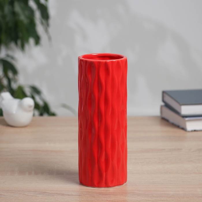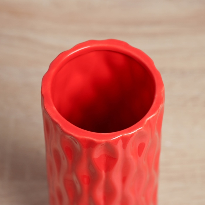 Яркий акцент для вашего интерьера! Керамическая ваза «Тьяго» с рельефом петелек — это настольная ваза привносит в пространство энергию и теплоту. Её насыщенный красный цвет и выразительная фактура создают живописную игру света и тени, делая любой букет или одиночную ветку произведением искусства.