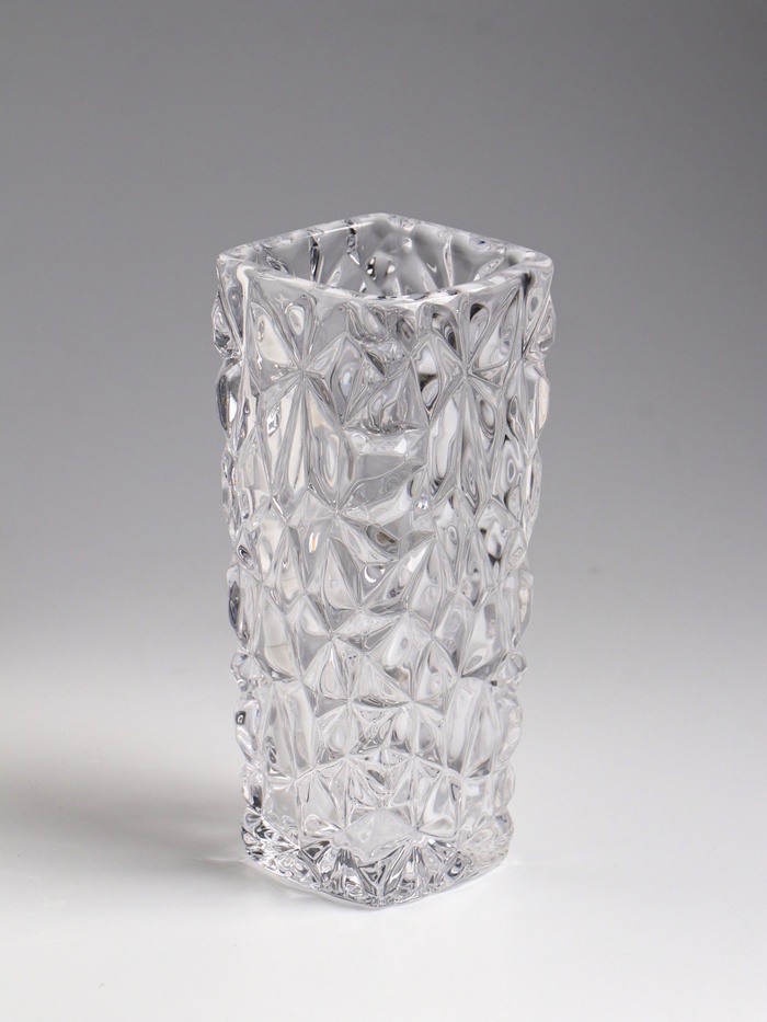 * Игра света и формы: Множество лучеобразных граней преломляют свет, создавая динамичные блики. Ваза становится источником мягкого сияния даже с одним стеблем, добавляя интерьеру объема и глубины.