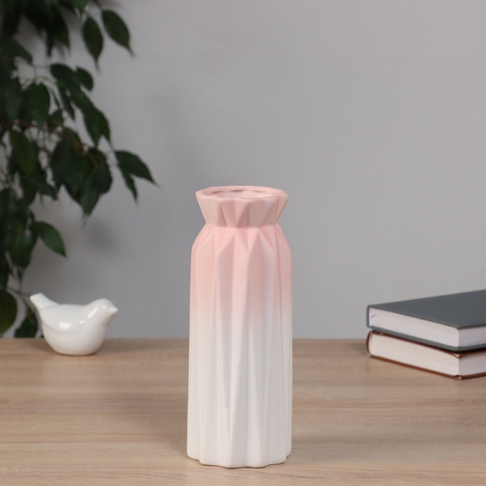 Позвольте представить вам настольную вазу, которая станет изюминкой вашего интерьера — элегантную вазу с галантными гранями в гармоничном сочетании белого и розового цветов. Эта ваза не просто хранитель цветов, но и настоящая украшение, способное преобразить любое пространство.