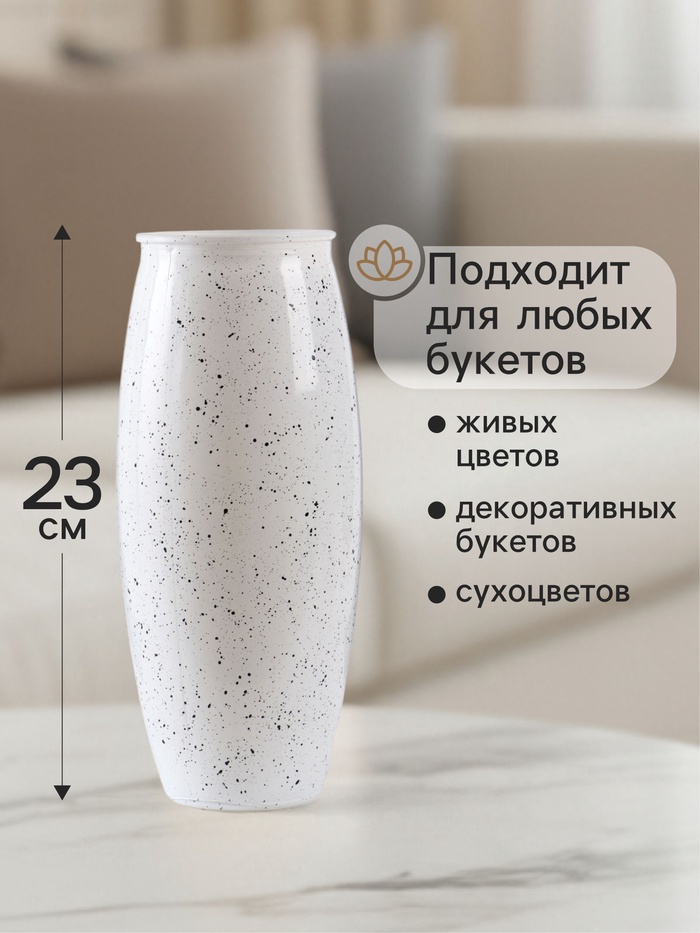 Настольная ваза «Крапле» белого цвета в чёрную крапинку станет стильным акцентом в интерьере любого помещения. Сочетание минимализма и функциональности создаёт изысканное решение для современного декора. Эта модель, высотой 23 см, прекрасно впишется как в классический, так и в современный интерьер, добавляя в него лёгкость и изящество. Идеальный выбор для тех, кто ценит элегантность и утончённые детали.