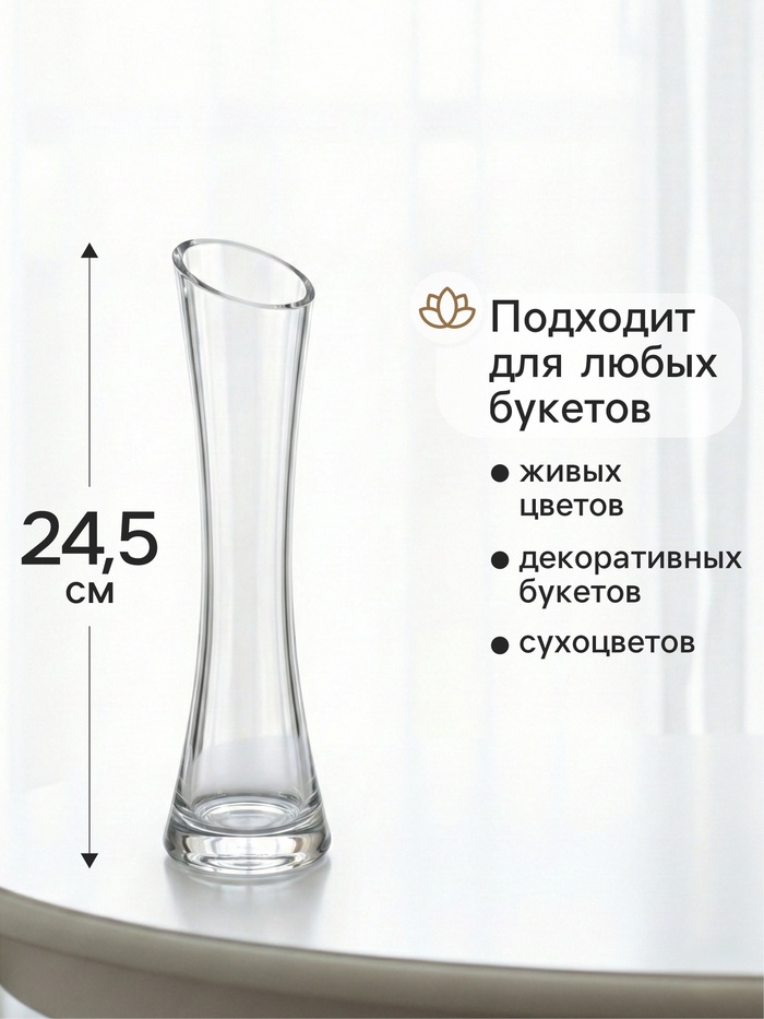 * Идеальные пропорции для букетов: Высота в 24,5 см оптимальна для средних и длинностебельных цветов — роз, тюльпанов, гербер или веточек. Ваза надежно удержит композицию, позволяя цветам раскрыться во всей красе.