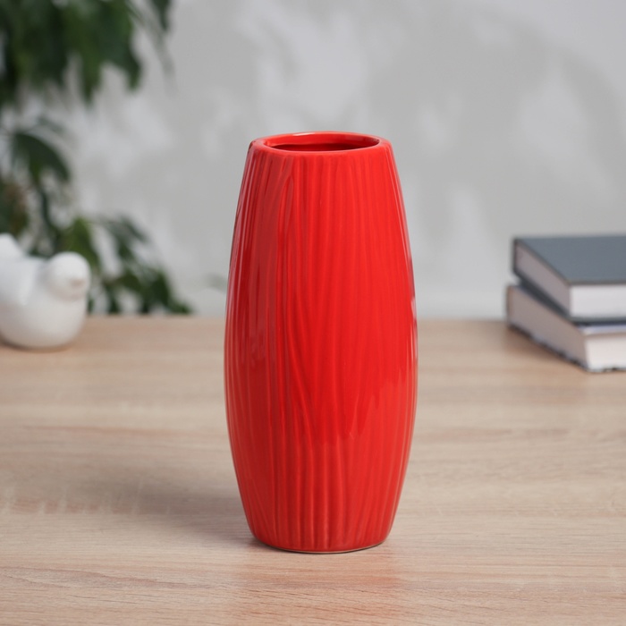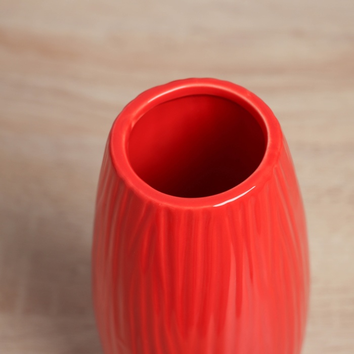 Настольная ваза из керамики с рельефными полосками. Яркое акцентное решение для вашего интерьера. Красный цвет добавляет теплоту и комфорт в любое пространство, а компактные размеры позволяют разместить вазу даже в ограниченном пространстве. Высота 17 см — идеальна для небольших букетов или в качестве самостоятельного украшения.