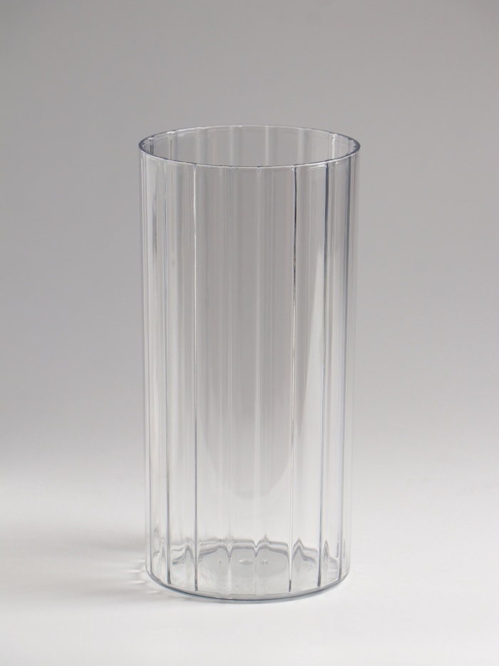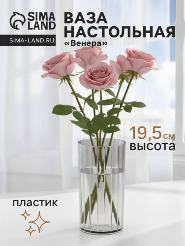 Прозрачная ваза с рифлёными линиями создаёт элегантный акцент для любого интерьера. Её строгий силуэт и игра света на гранях придают композициям из цветов особый объём и динамику.