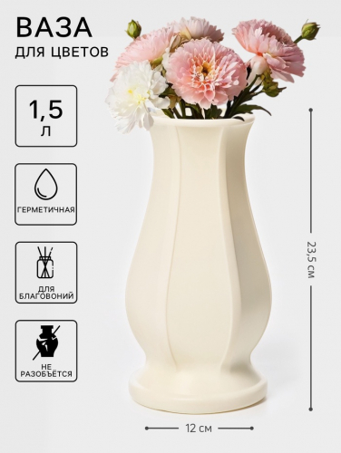 Используйте её для одиночных стеблей, чтобы подчеркнуть их графичность, или создавайте пышные композиции. Чёткие вертикальные линии вазы добавляют структуру даже самым нежным полевым цветам, сохраняя их естественную красоту. Простота ухода делает этот предмет практичным выбором для тех, кто ценит эстетику без лишних хлопот.