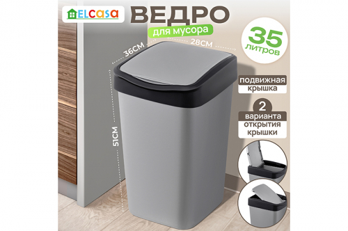 Ведро для мусора с подвижной крышкой ELCASA "Тандем" размером 36х28х51 см и объёмом 35 литров поможет поддерживать чистоту в вашем доме, офисе или на улице. Мусорное ведро выполнено из полипропилена. Этот вид пластика считается наиболее безопасным, так как не содержит бисфенол А и не выделяет вредных веществ. Мусорное ведро можно разместить в ванной комнате, туалете или на кухне. Поставьте урну из пластика на пол возле раковины, стола или в хозяйственный шкаф. Высокое пластиковое ведёрко можно использовать как офисное – под ненужные бумаги. Большая ёмкость обеспечивает достаточное пространство для хранения мусора любого вида. Можно приспособить на даче как уличную мусорку. Пластиковые мусорные вёдра выполнены в универсальном дизайне и хорошо сочетаются друг с другом. Можно использовать несколько баков из пластика серии "Тандем" для организации раздельной системы сбора мусора. Корзина для мусора с откидной крышкой станет незаменимым помощником для поддержания чистоты как в доме, так и на улице и поможет организовать порядок в любом пространстве. /