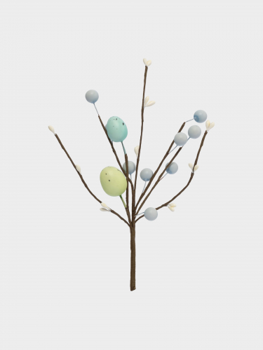 Ветка декоративная, 20 см, пенопласт/бумага, Ветка с зелеными яйцами, Interior Easter
