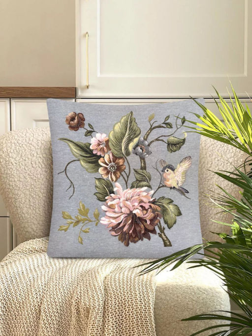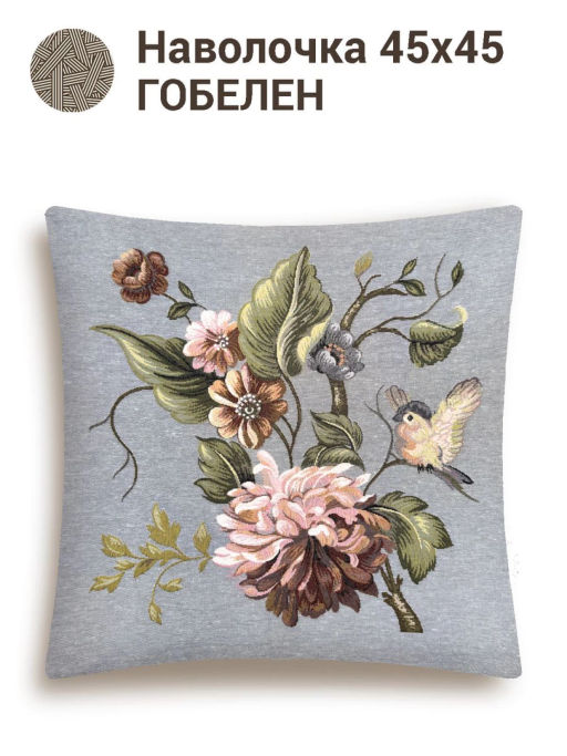 Вишневое дерево Птичка серый фон Наволочка 45х45 см 01219
