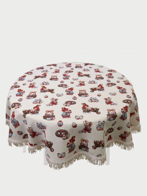 Зайчики кролики Корзинка Скатерть круг д140 см Бахрома 2517240