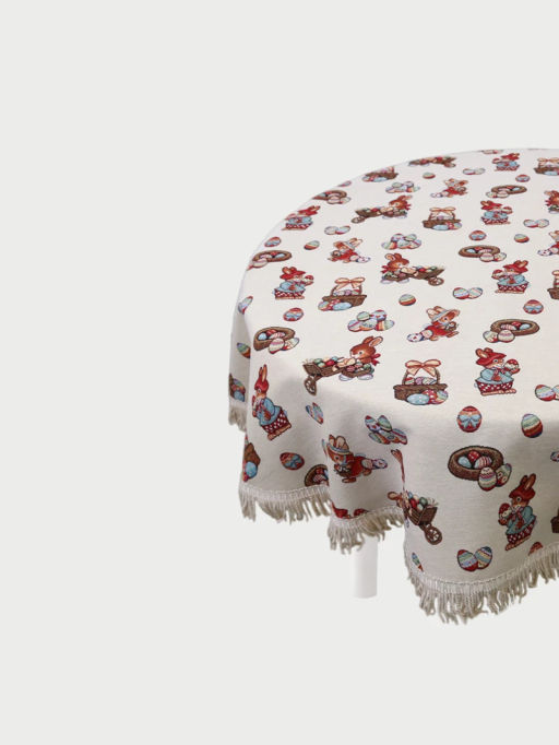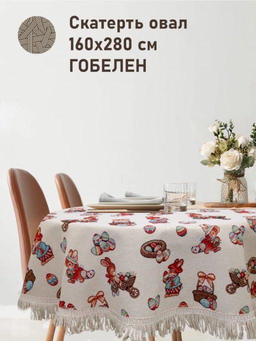 Зайчики кролики Корзинка Скатерть овал 160х280 см Бахрома 2517241