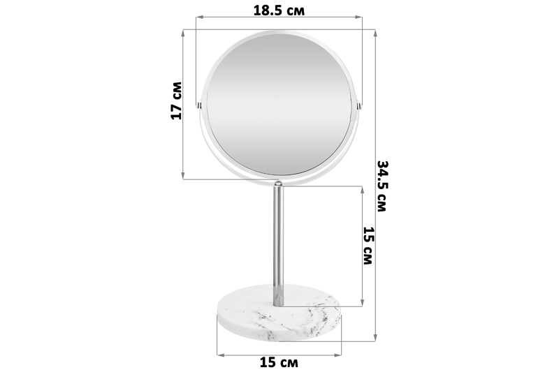Зеркало двустороннее на мраморной подставке 18,5*15*34,5 см "Хром"