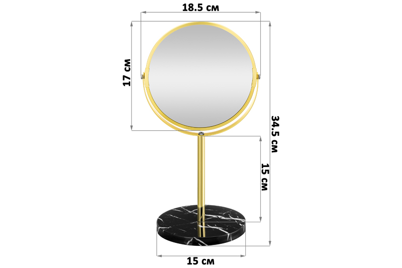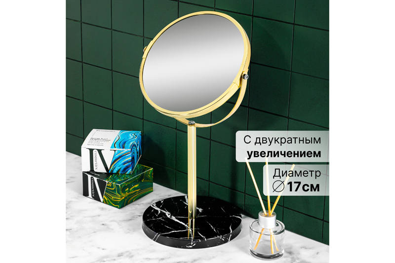 Зеркало двустороннее на мраморной подставке 18,5*15*34,5 см "Золотое"