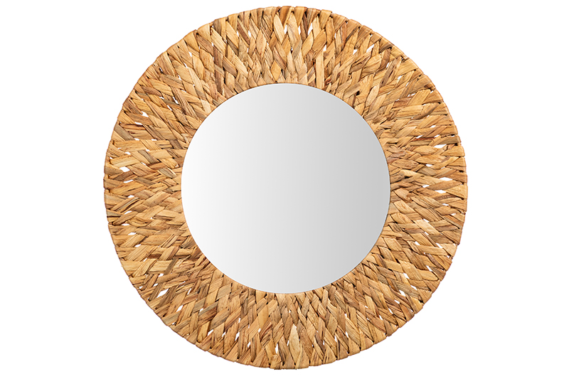Настенное декоративное зеркало от бренда ELCASA станет украшением квартиры и дачи, позволяя следить за вашей красотой в течение дня. Размер изделия – 60х60х0,7 см. Диаметр зеркальной поверхности – 34 см. Плетёная рамка выполнена из сушёных стеблей и листьев водного гиацинта, её ширина 13 см. Природный материал экологичен и не выцветает на солнце, сохраняя свой натуральный бежевый оттенок. Зеркальце имеет с обратной стороны металлический подвес, что гарантирует надежность закрепления на любой вертикальной поверхности. Большое интерьерное зеркало можно повесить над комодом, туалетным столиком или над тумбочкой в коридоре. Оно поможет проводить косметические процедуры и наносить макияж. Примерьте любые аксессуары и головные уборы в вашей гардеробной, разместив его возле шкафа с одеждой. Расположите в офисе над рабочим столом или у входной двери. Изделие станет функциональным элементом декора домашнего интерьера. Не рекомендуется применять абразивные моющие средства. Навесное зеркало – это оригинальный и практичный подарок на любой праздник. Поставляется в картонной коробке. В коллекции бренда ЭЛЬКАСА представлен большой выбор функциональных товаров для дома, которые позволят создать комфорт в любом помещении!