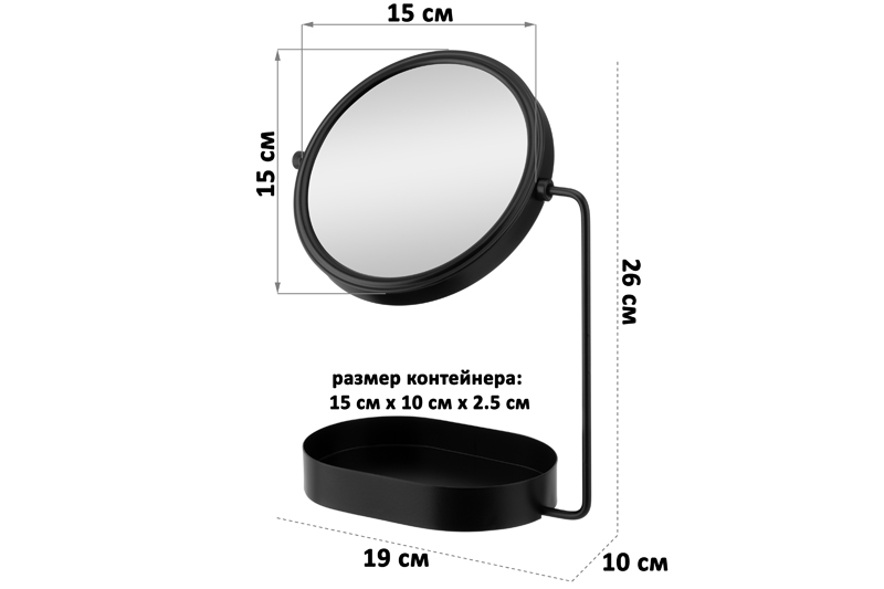 Зеркало настольное двустороннее с контейнером 19*10*26 см "Черное"