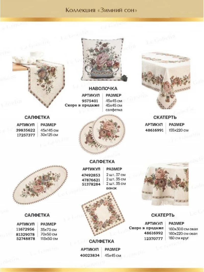 07.09.25 Нижегородская обл. LeGobelin - волшебный мир гобеленов: скатерти, салфетки, наволочки и многое другое. Создаем уют и красоту в доме! Готовимся к новогодней сказке!Выкуп 6/25