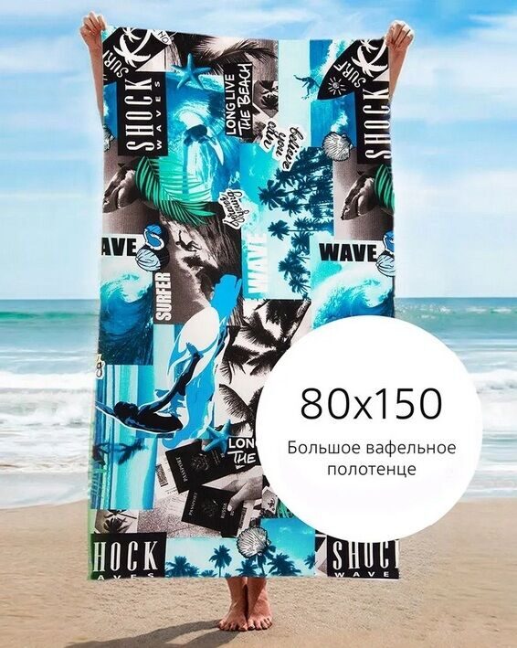 Полотенце банное "На волне" 80*150 см. вафля хлопок 100%