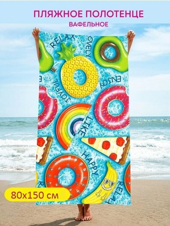 Полотенце банное "Яркий отдых" 80*150 см. вафля хлопок 100%