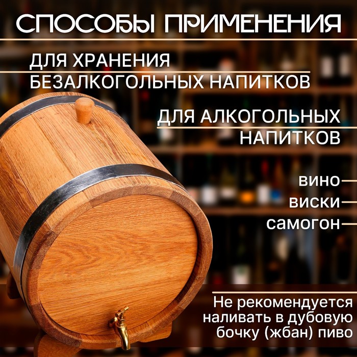 * Дубовые бочки (жбаны) с алкогольными напитками необходимо хранить в тёмном, хорошо вентилируемом помещении без прямого солнечного света и без неонового освещения.