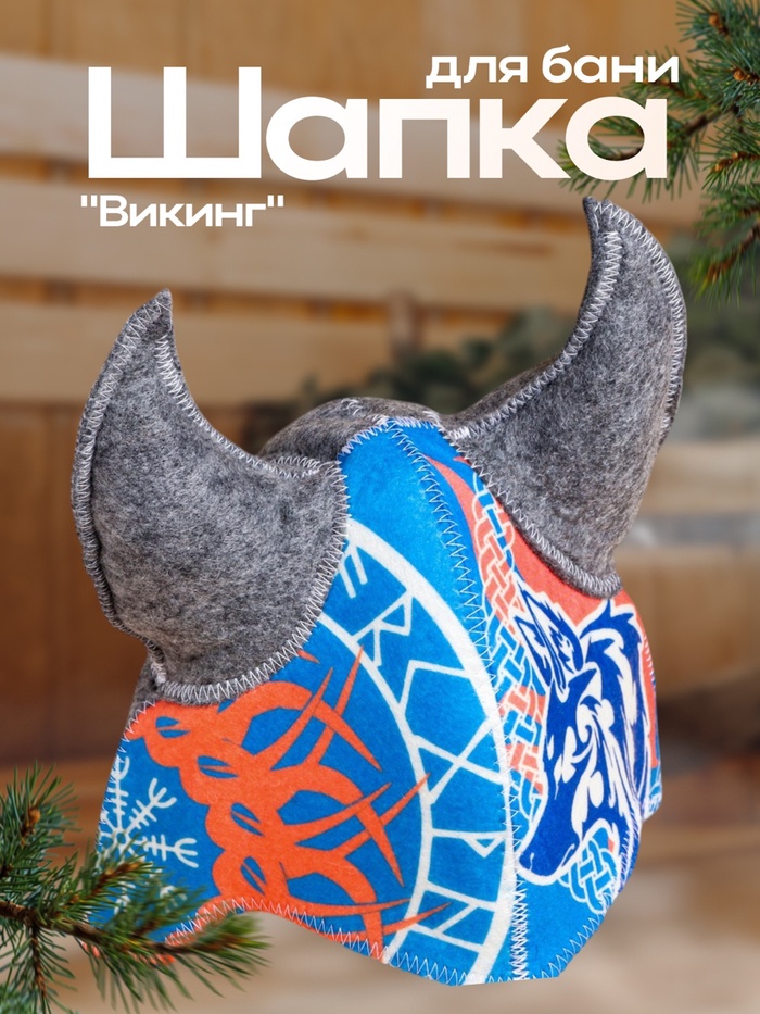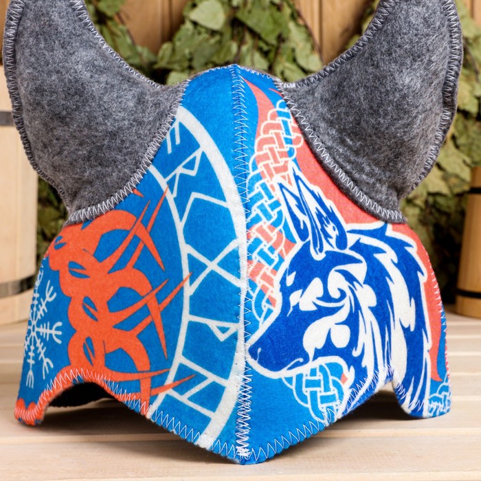 Шапка для бани и сауны «Викинг с волком», войлок, синий, «Добропаровъ»