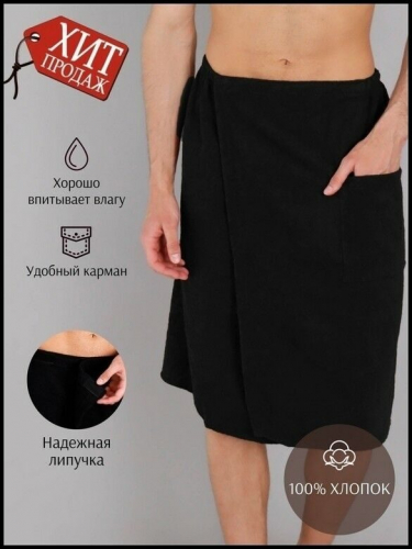 Килт мужской махровый из натурального материала. Полотенцем легко обернуться после сауны или бани из-за липучек. Килт станет полезным и практичным подарком для мужчин любого возраста