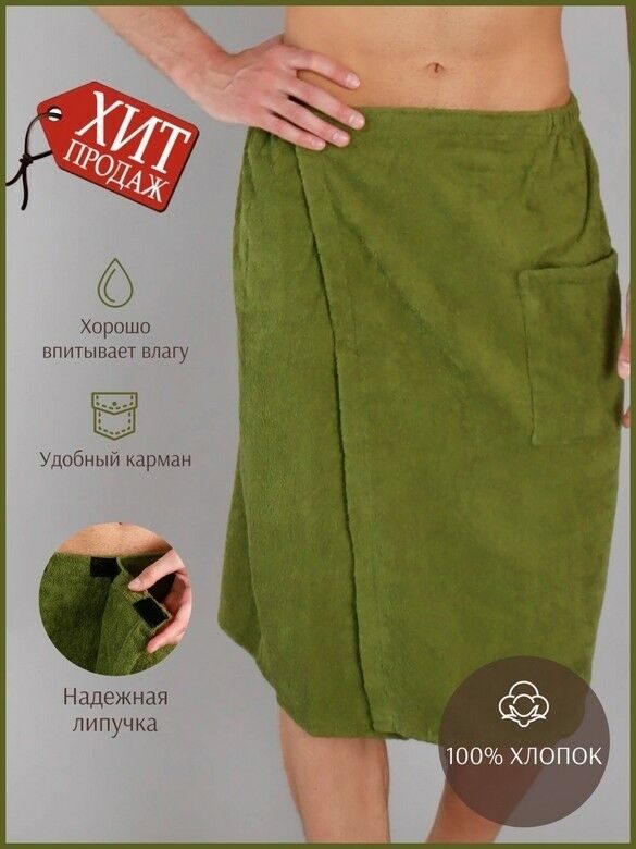Килт мужской для бани и сауны ОЛИВА махровый хлопок 100%