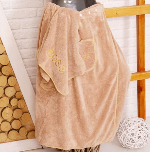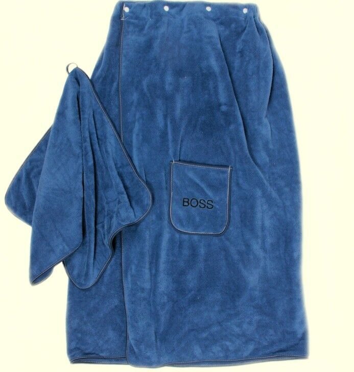 Комплект мужской с вышивкой "BOSS"-СИНИЙ 2 пр. (килт+полотенце) микрофибра