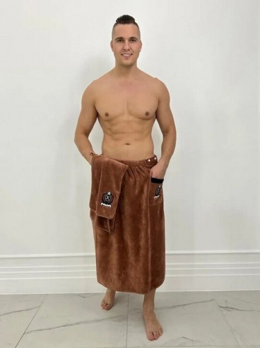 Комплект мужской с вышивкой "КОРОЛЬ БАНИ"-СВЕТЛО-СЕРЫЙ 2 пр. (килт+полотенце) микрофибра