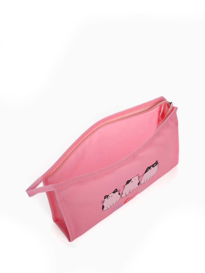 Косметичка треугольная на молнии, большая, с рисунком, нежно-розовая