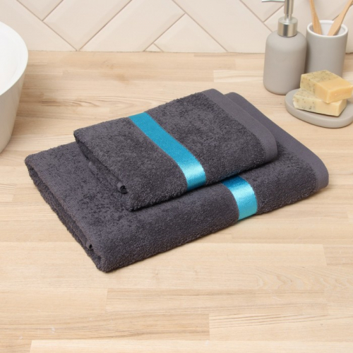 Полотенце махровое Love Life «Самум», 70×140 см, хлопок 100%, тёмно-серое, синее