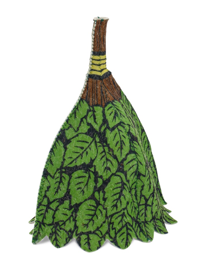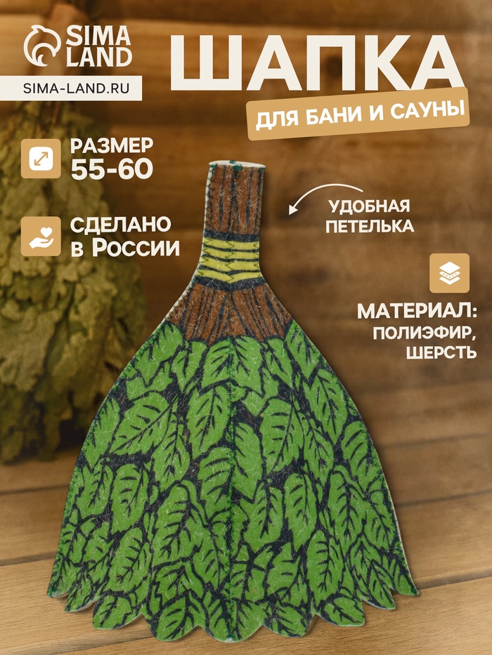 * Яркий принт и фигурный крой: узор не выцветает от высоких температур, а форма веника добавит шапке атмосферности в бане.