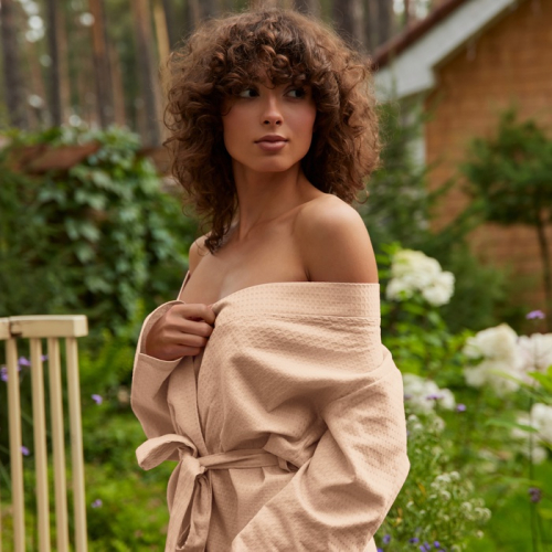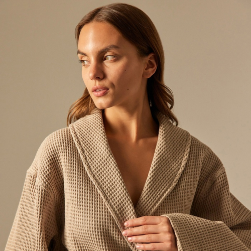 Халат вафельный женский SL HOME: Basic «Саббиа», размер S, хлопок 100%, коричневый
