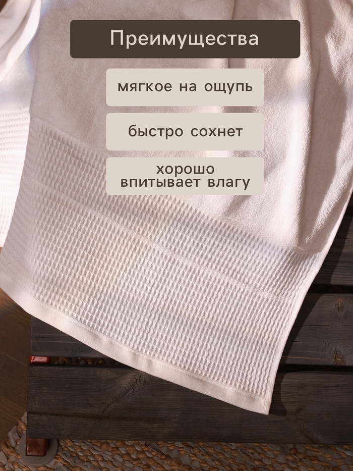 Банное махровое полотенце SL HOME: Waffle Блан де Блан – практичное и стильное решение для дома, спорта и путешествий. Выполнено из 100% хлопка с вафельным плетением, что обеспечивает мягкость, отличную впитываемость и быструю сушку. Оптимальный размер 100×180 см удобен для использования после душа, в сауне или на пляже. Плотность 490 г/м² гарантирует долговечность и устойчивость к износу. Легко стирается, не теряет форму и сохраняет первоначальный вид даже после многократных стирок.