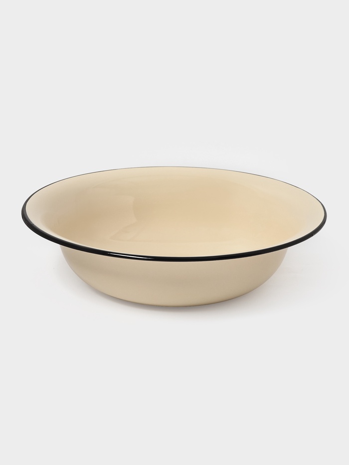 Гладкая эмалевая поверхность, круглая форма и устойчивое дно делают его удобным для стирки, замачивания, переборки урожая или мытья посуды на природе.