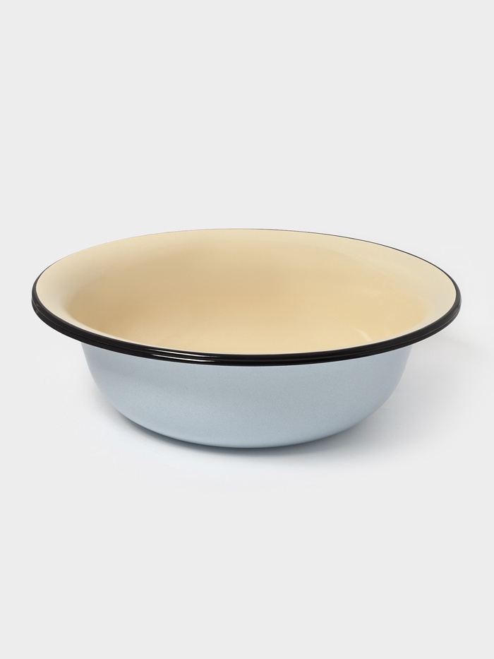 Гладкая эмалевая поверхность, круглая форма и устойчивое дно делают его удобным для стирки, замачивания, переборки урожая или мытья посуды на природе.