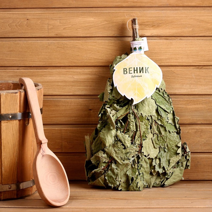 * дубовый веник помогает снять напряжение и усталость после физических нагрузок