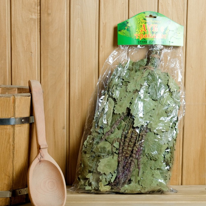* дубовый веник помогает снять напряжение и усталость после физических нагрузок