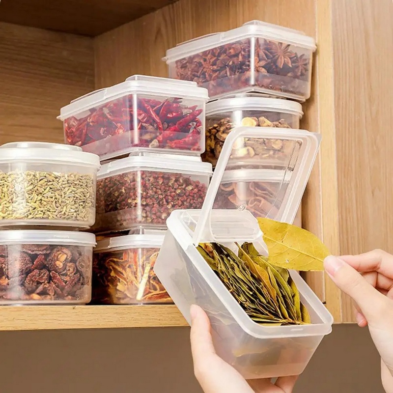 Каждая хозяйка оценит его продуманный дизайн. Прямоугольная форма позволит заполнить пространство на полках и ящиках по максимуму, прозрачный корпус поможет быстро найти нужные запасы, а благодаря откидной крышке можно легко достать необходимое количество продуктов.