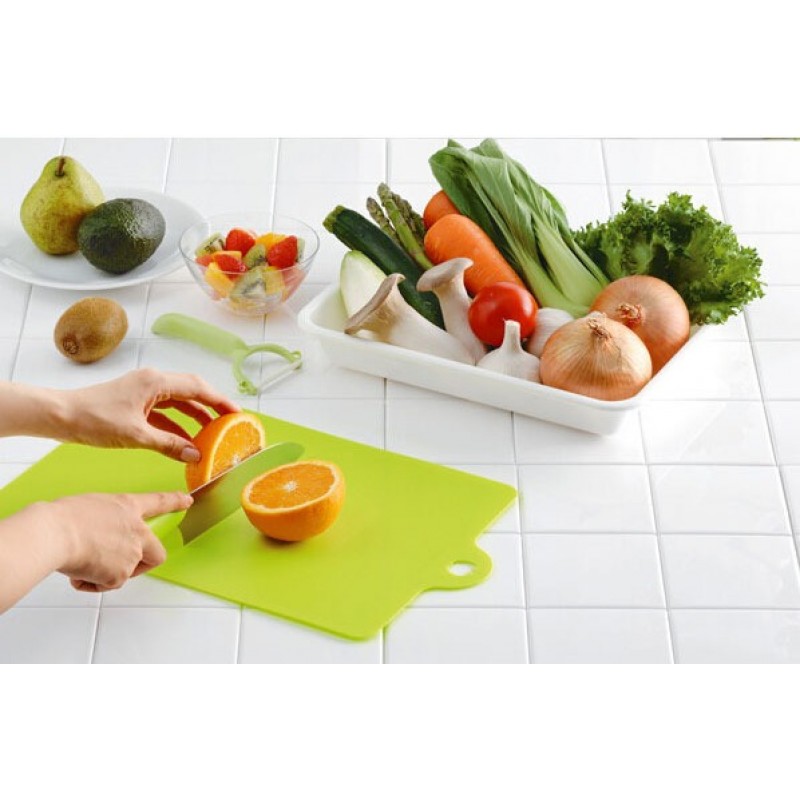Прочная износостойкая гибкая кухонная разделочная доска имеет одну отличительную особенность - за счет своей гибкости она позволит Вам легко пересыпать нарезанные продукты, не уронив при этом ни кусочка.