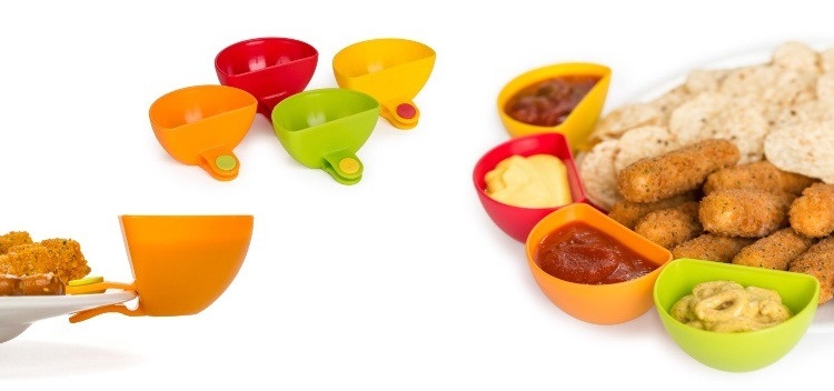 Благодаря прищепке соусник легко крепится к краю тарелки