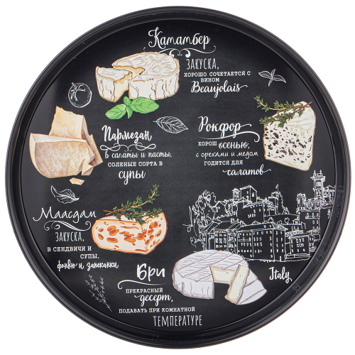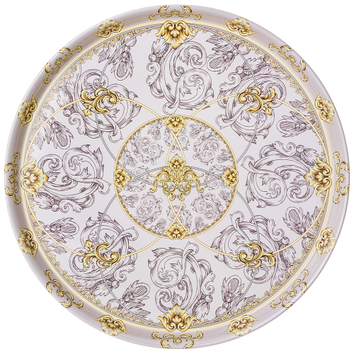 Поднос имеет оптимальную круглую форму диаметром 33 см и удобные для переноса содержимого приподнятые стенки высотой 2,1 см.