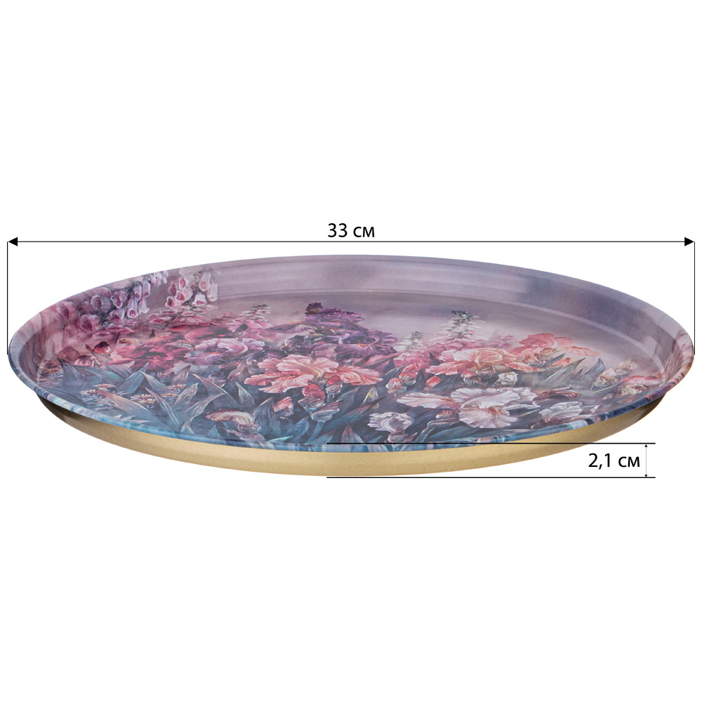Поднос имеет оптимальную круглую форму диаметром 33 см и удобные для переноса содержимого приподнятые стенки высотой 2,1 см.
