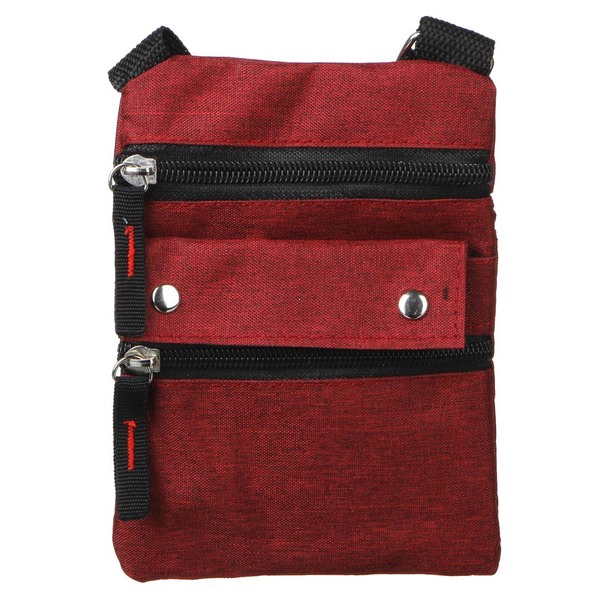Одно основное отделение для разных мелочей и небольших документов, и два передних кармана - на молнии и на кнопках и один карман на молнии с обратной стороны. Плечевой ремень легко регулируется.