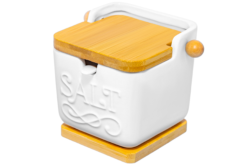 Банка для сыпучих продуктов из серии «Bon Appetit» от Elan Gallery послужит для организации хранения на вашей кухне. Размер ёмкости – 12х9х9,5 см, объём – 300 мл. Выполнена из высококачественного белого фарфора и украшена изысканной надписью «Salt» («Соль»). Фарфор не впитывает цвет продуктов и легко отмывается, благодаря чему надолго сохранит свою белизну. Откидная крышка и подставка выполнены из бамбука. «Bon Appetit» – это коллекция посуды в стиле френч-винтаж, которая создаст на вашей кухне атмосферу романтики и уюта. Отличительные черты серии – это сочетание светлых оттенков и картинки, стилизованной под ретро. Лаконичные фразы на посуде добавят изысканности и утончённости каждому приёму пищи. Изделие отлично подойдёт не только для соли, но и для сахара, чая и кофе, приправ и специй. Храните в нём ягоды, орехи и сухофрукты, а также небольшую порцию конфет, леденцов и мармеладок. Фарфоровая ложечка поможет набрать необходимое количество продукта и компактно помещается в баночке благодаря выемке на крышке. Герметичная откидная крышка защитит ваши продукты от попадания пыли и грязи. Она легко открывается, благодаря чему баночка станет удобным и стильным дополнением любой чайной сервировки. Не рекомендуется применять абразивные моющие средства. Не подходит для использования в посудомоечной машине и микроволновой печи. Бамбук нельзя замачивать! Поставляется в дизайнерской картонной коробке – благодаря ей вам не потребуется дополнительная подарочная упаковка. Это идеальный подарок для хозяйки, ценящей не только практичность, но и привлекательность. Коллекция посуды «Bon Appetit» от бренда Элан Галерея впишется в любой интерьер и придаст шарма и элегантности сервировке ваших блюд!