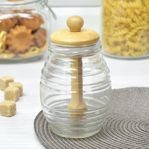 Банка для меда №2 8,3*14,2см с ложкой и бамбуковой крышкой