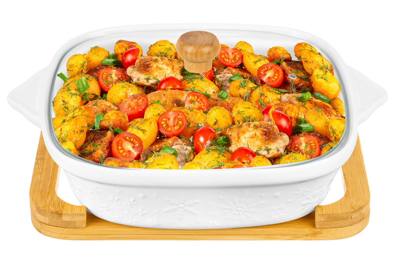 Блюдо из серии «Снежинки» от Elan Gallery предназначено для приготовления и эстетичной подачи ваших любимых блюд. Размер изделия – 31,5х25,6х12,5 см, объём – 2 литра. Внутренний размер блюда – 24х23 см. Выполнено из высококачественного белого фарфора. Он не впитывает цвет продуктов и легко отмывается, благодаря чему надолго сохраняет свою белизну. Поверхность изделия украшают рельефные узоры в виде снежинок. Крышка выполнена из стекла, ручка на крышке и подставка выполнены из натурального бамбука. Поверхность изделия украшают рельефные узоры в виде снежинок. Мы создали коллекцию новогодних и рождественских товаров для сервировки и декора, которые наполнят пространство атмосферой уюта. Изделия помогут оформить интерьер праздничными композициями и добавят нотку зимнего волшебства. Блюдо подойдёт для подачи сельди под шубой, салатов и плова. Используйте глубокую ёмкость в роли шубницы, чтобы порадовать гостей любимым праздничным блюдом. Такая посуда поможет вам в приготовлении заливного и желе. Крышка поможет сохранить температуру блюд, а удобная деревянная ручка облегчит её снятие и не даст обжечься. Подставка защитит поверхности от воздействия высоких температур и послужит в качестве подноса для безопасной и комфортной подачи блюда к столу. Изделие подойдёт для сервировки большого брикета мороженого, которое можно разделить с семьёй или друзьями. Не рекомендуется применять абразивные моющие средства. Без крышки и подставки подходит для использования в посудомоечной машине, микроволновой печи и духовом шкафу при температуре до 230 градусов. Бамбук нельзя замачивать! Поставляется в дизайнерской картонной коробке – благодаря ей вам не потребуется дополнительная подарочная упаковка. В коллекции бренда Elan Gallery представлены посуда, сувениры и украшения с новогодней символикой. Каждый подберёт оригинальный сюрприз для семьи, друзей и коллег на Новый год и Рождество. Такой подарок наполнит дом семейным теплом и духом праздника! /