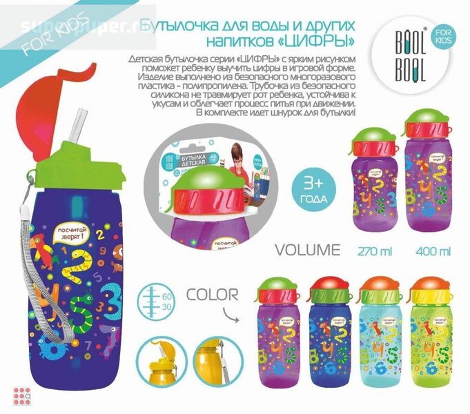 Откидной механизм удерживает крышку в открытом положении, благодаря чему, она не падает на лицо при питье. Мягкая силиконовая трубочка не травмирует десны и зубы, поэтому особенно подойдет детям раннего возраста, а также понравится дошкольникам и школьникам. Оптимальные габариты питьевой бутылочки позволят разместить ее практически в любой сумке или рюкзаке. Бутылочку удобно взять с собой на прогулку, в школу, на тренировку, на занятия спортом или на отдых. Отличный вариант взять бутылку для воды на пляж - крышка защитит трубочку и содержимое от попадания пыли и других загрязнений. Бутылка пластиковая с трубочкой и шнурком на руку подходит для любых напитков, за исключением спиртосодержащих. Рекомендуемая производителем температура использования от 5 до 70 градусов. Поильник пластиковый с крышкой не требует особых условий хранения. Необходимо перед каждым использованием промыть его водой вместе со средством для мытья посуды. Не использовать абразивные средства. Приятного использования и отличного настроения!