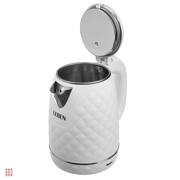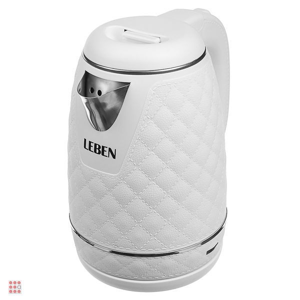 Электрический чайник Leben — это стильный и функциональный прибор для кипячения воды. Он имеет объём 1,8 литра и мощность 1500 Вт, что позволяет быстро нагреть воду. Корпус чайника выполнен из нержавеющей стали и пластика, что обеспечивает долговечность и устойчивость к коррозии. Белый цвет придаёт изделию элегантный вид. Автоматическое отключение при закипании гарантирует безопасность использования. Световой индикатор работы информирует о том, что чайник находится в рабочем состоянии. Поворот корпуса на 360 градусов делает его удобным в использовании. Этот электрический чайник станет незаменимым помощником на кухне и позволит наслаждаться горячим чаем или кофе в любое время.