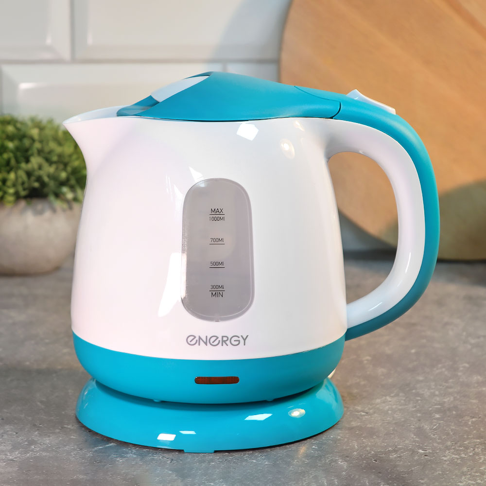 Чайник электрический 1л ENERGY E-275 пластик бело-бирюзовый