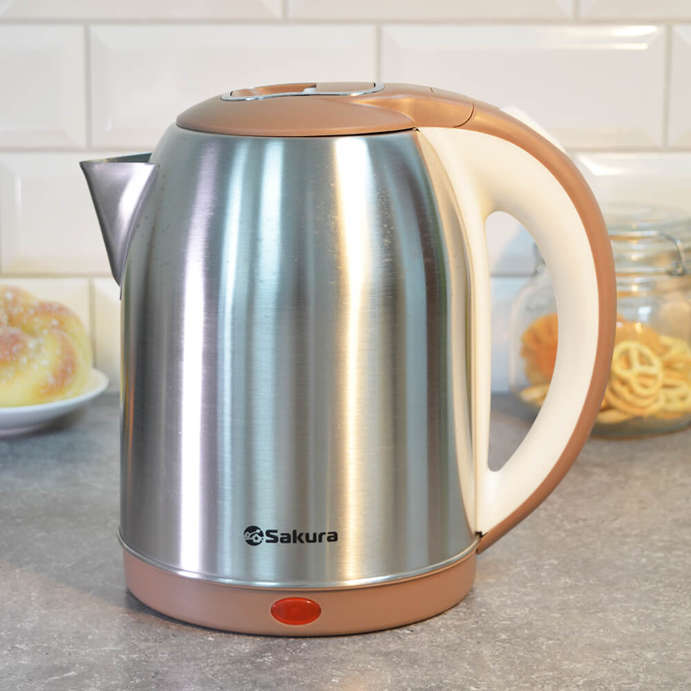Чайник электрический 2,5л SA-2164WBG дисковый, цвет белый/бежевый