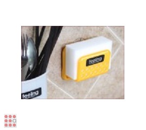 Аккуратный и компактный держатель для губок выполнен из прочного пластика. Способствует скорейшему высыханию губки.